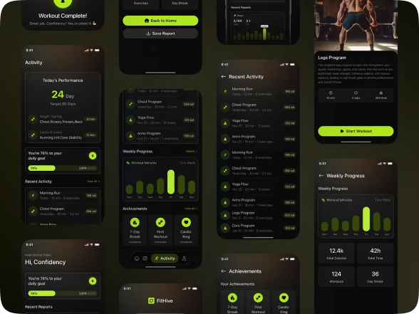 Fitness Mobile App UI Design - Analytics, Streaks & Performance
