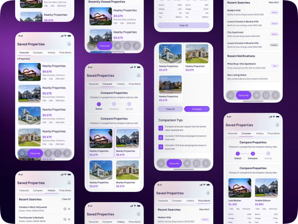 Real Estate App — Saved, Compare, History & Price Alerts UIUX