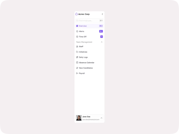 HR Management Dashboard Sidebar UI – Clean & Minimal Navigation