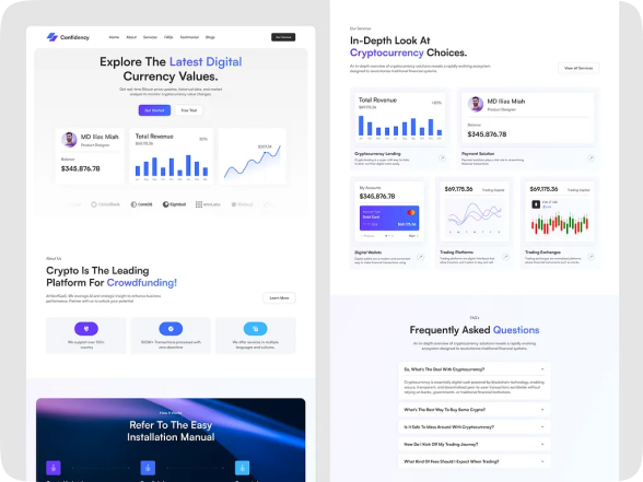 Crypto Website UI – Digital Currency & Revenue Dashboard