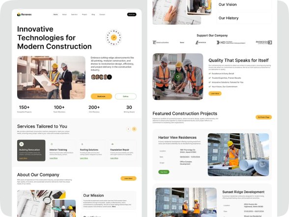 Responsive Construction Company Website Design UIUX Design