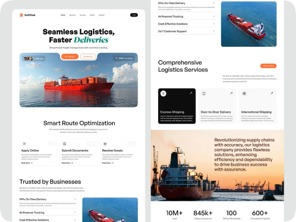 SwiftHub – Seamless Logistics Website UI Design | Animation