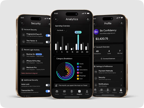 Smart Wallet App – Security, Analytics & Profile Dashboard