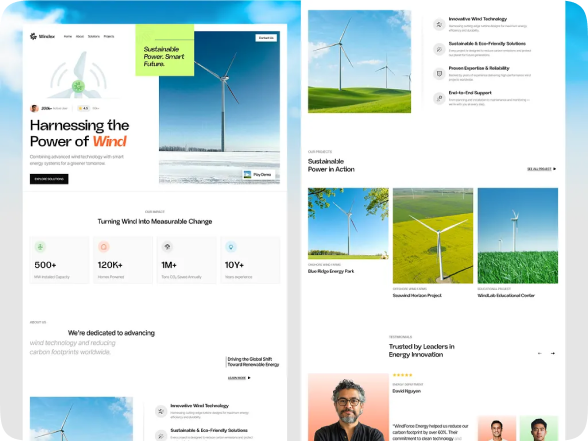 Wind Power Company Website, Clean Energy & Sustainable Future UI