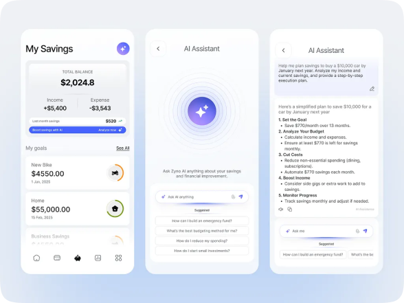 Zyno – AI-Powered Personal Finance & Savings App UIUX Design
